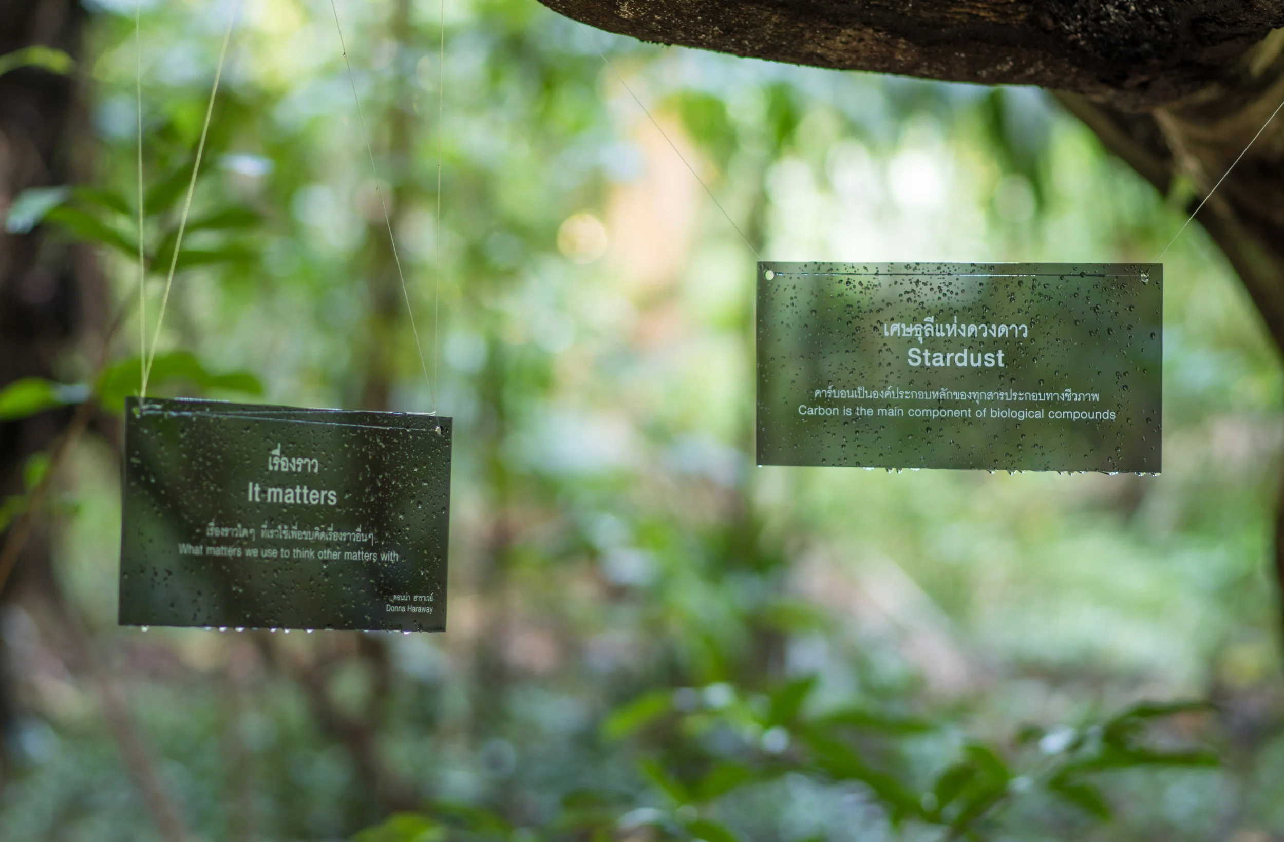 "Begun in the Than Bok Khoranee National Park, as part of Le Musee de Grand Dehors and the 2018 Thailand Biennial, the Forest University has hosted conversations with artists, art historians, forest educators, forest managers, indigenous activists, Muslim and Buddhist thinkers in conversations designed to illuminate and contemplate the relationship between humans and the forest. In these conversations, we consider deep time as it persists in carbon, an element that is essential to all life forms and that ties all beings and things together through the larger planetary carbon cycle.